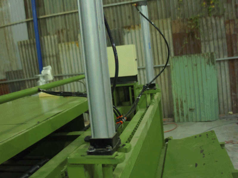 由4組獨立油壓柱調整上蒸氣加熱管組之升降。依據成品厚度分別調整油壓柱高低以定位上下蒸氣加熱管組間適當間隙。