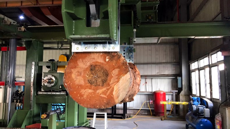 The lathe can be operated automatically using data on the diameter of the log